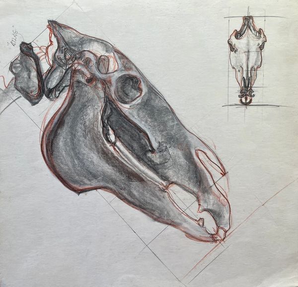 Graphite and Conte' Crayon study of a horse skull.